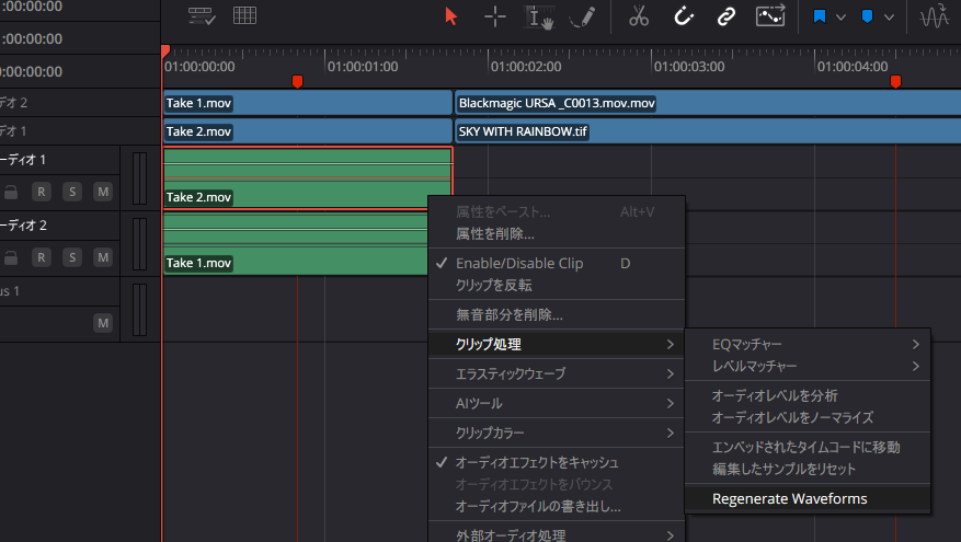 カット、エディット、Fairlightなど各種ページで波形が表示されません。
