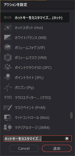 Fusionでノード(ツール)等をショートカットキーで呼び出したいです。良い方法はありますか?