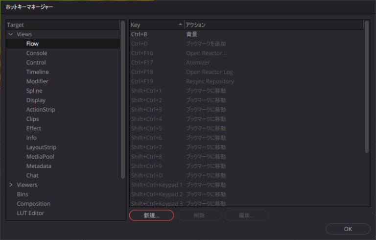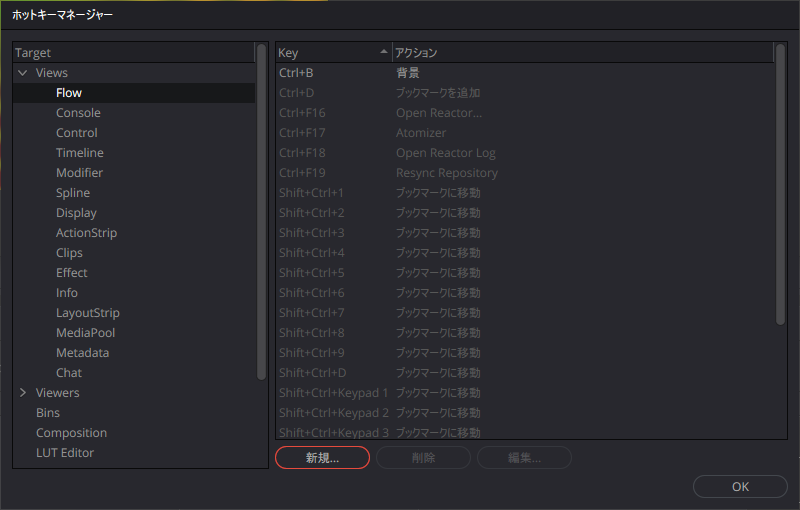 ノードのショートカットキーを追加する場合は、[Views]-[Flow]で設定します。